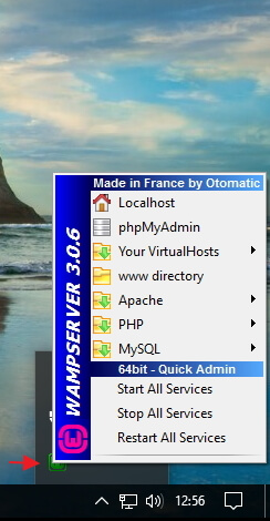 If this page doesn’t show up properly, you need to make sure that the WAMP server is started. When WAMP is up and running, you should see a green icon in the Windows notification area.