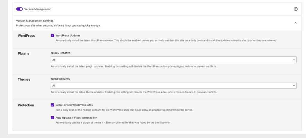 The Version Management module will send the Old Site Scan email if it detects outdated WordPress sites on your hosting account. A single outdated WordPress site with a vulnerability could allow attackers to compromise all the other sites on the same hosting account.