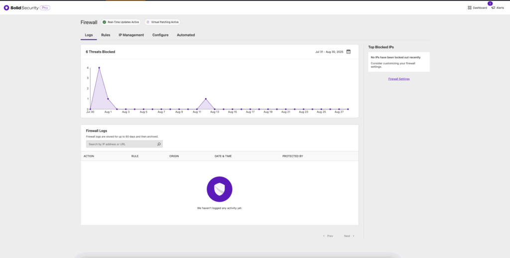 - Solid Security only logs requests when a security rule is triggered (firewall violation, brute force attempt, etc.).