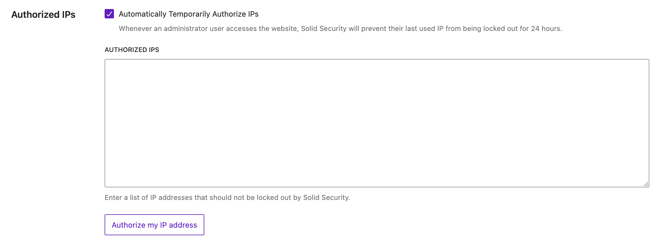 This is where you can whitelist an IP address to prevent getting locked out by Solid Security after triggering the Site Lockout conditions.