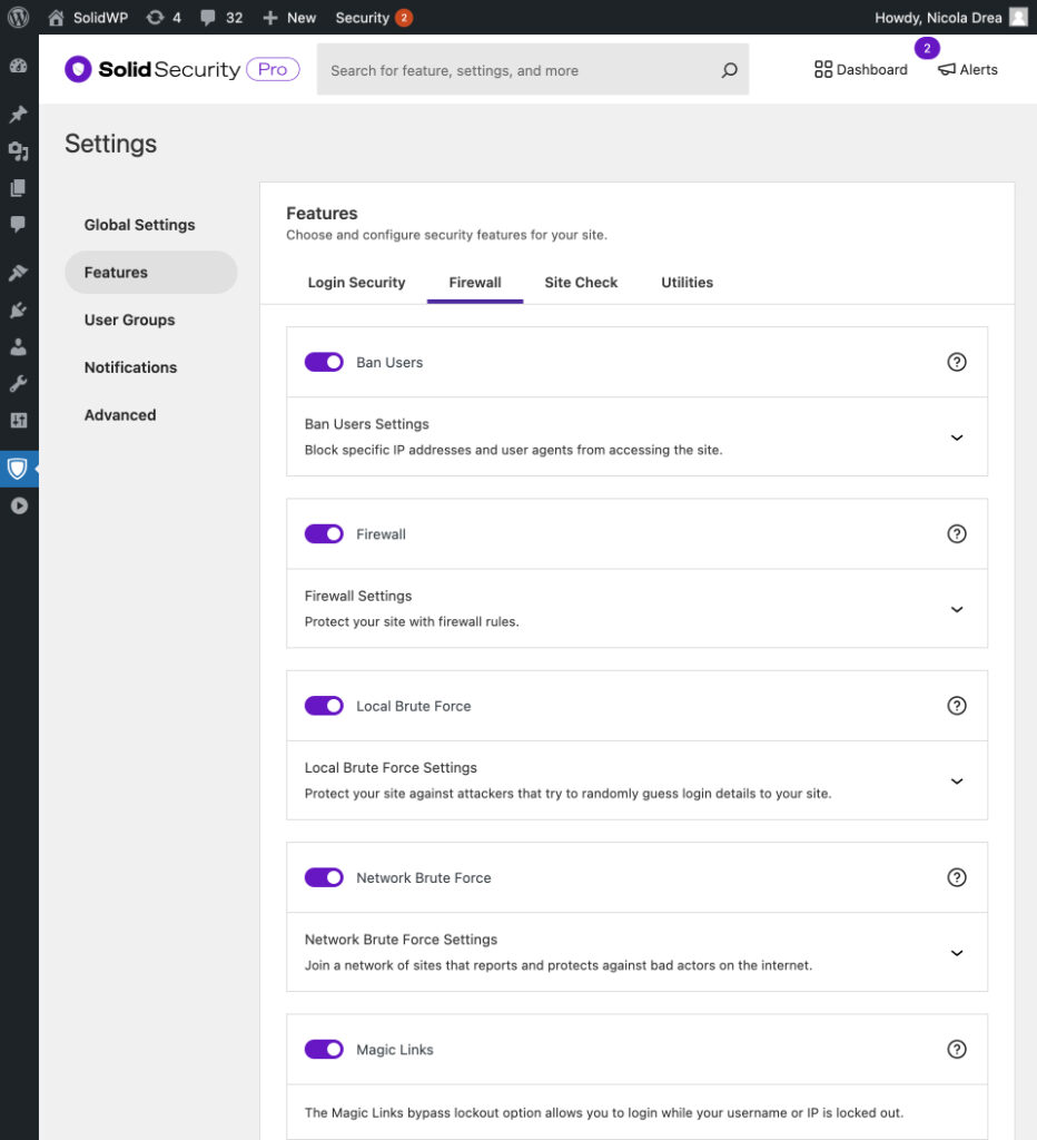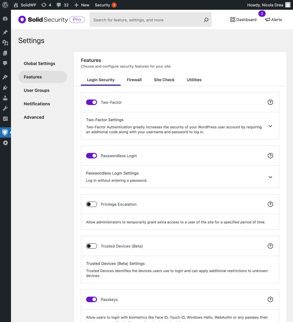 The Feature Flags settings in Solid Security Pro allow you to try experimental features before they are released.