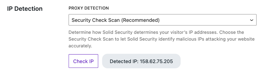 The “Proxy Detection” setting controls how Solid Security determines the IP address of an incoming request, which is crucial for Lockout and Brute Force protection.