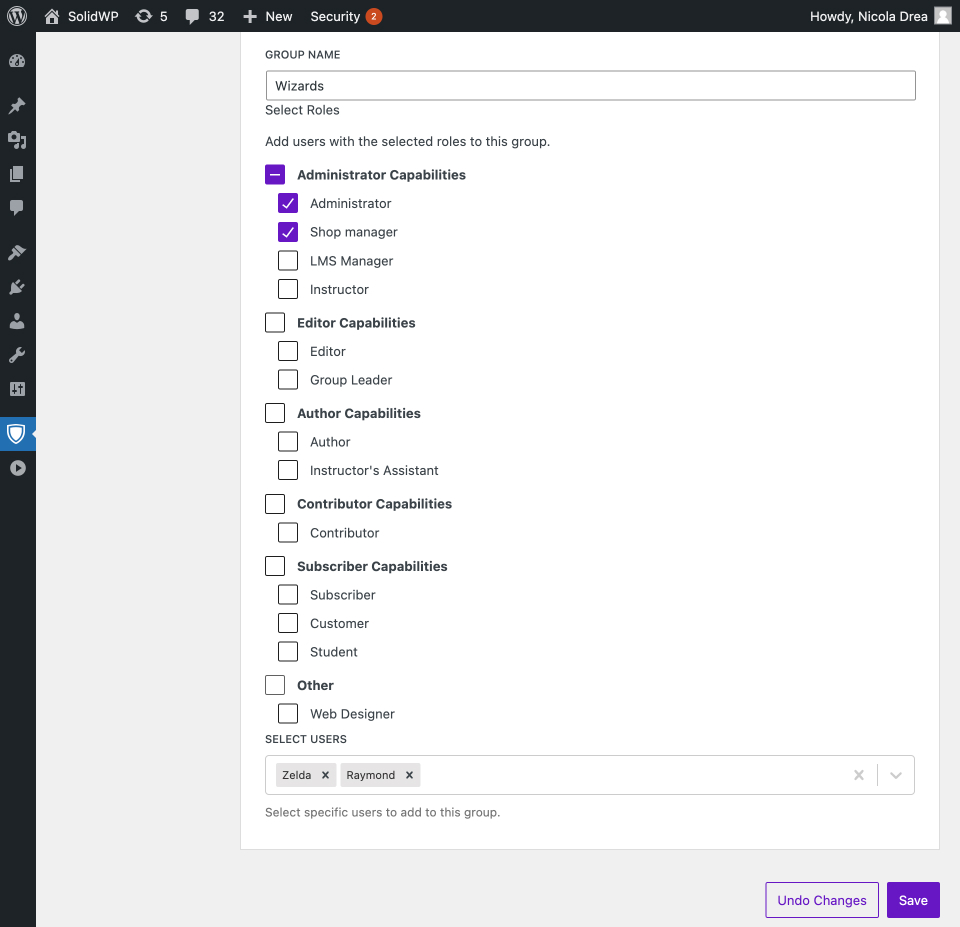 To grant extra access, head to the user’s Profile page and find the setting within the Solid Security User Security UI