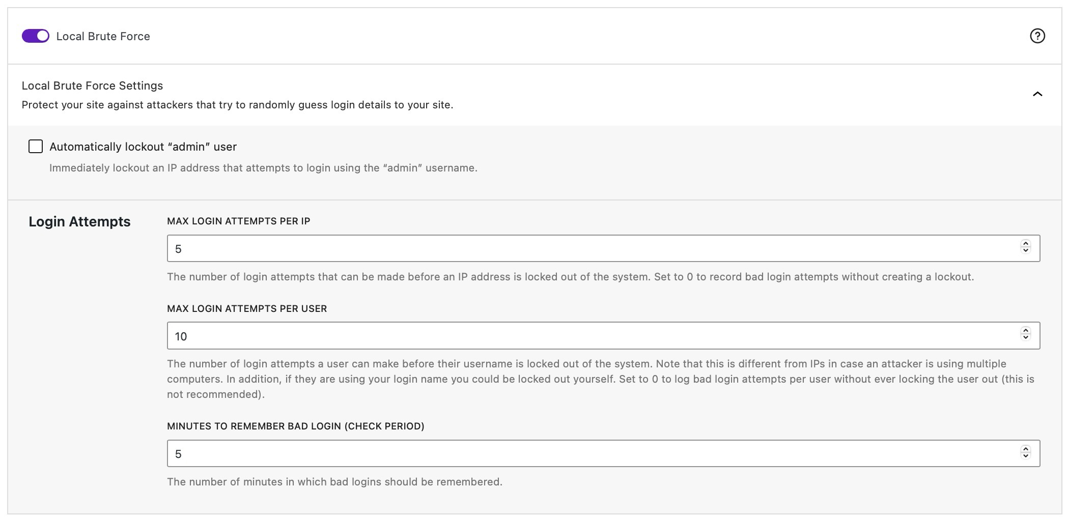 The Multiple Authentication Attempts per XML-RPC Request feature is another advanced feature that requires a bit of deeper understanding of XML-RPC to know how best to handle it.