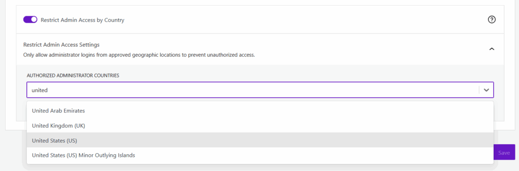 Restrict Admin Access by Country settings allow you to harden your site’s most sensitive area by establishing a geographic perimeter around your WordPress dashboard. This powerful defensive measure enables you to define a trusted list of approved countries for /wp-admin/ access, effectively neutralizing the threat of stolen credentials by blocking unauthorized login attempts from foreign regions before they can reach your site.