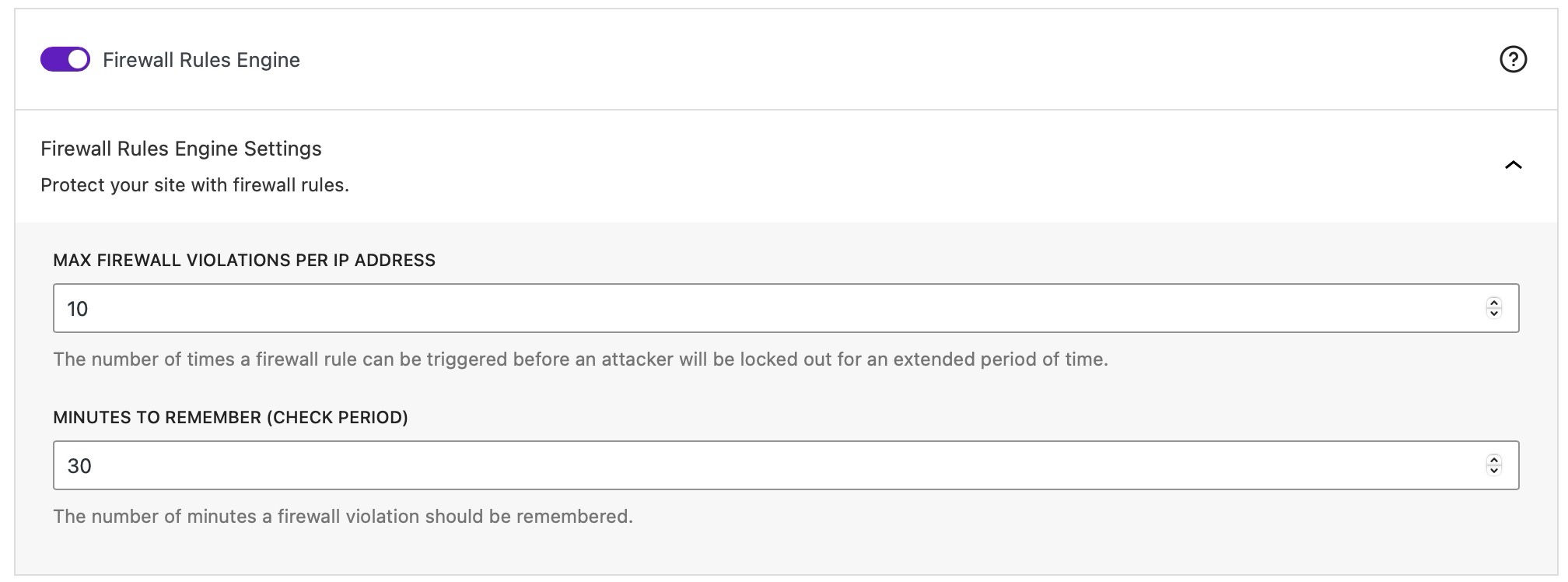 Enabling this lets you ban specific IP addresses and User Agents from accessing the site. When you open the dropdown on this setting, only the section for banning User Agents can be found. The specific section for banning IPs is located within the Security -> Dashboard page.