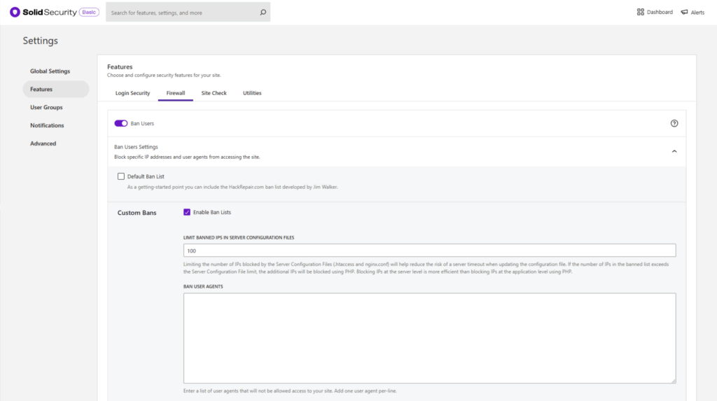 • When you enable this, you’re able to “crowd share” our SolidWP blacklist. If any IP has been banned on any other site in our network, it will be banned from your site as well.