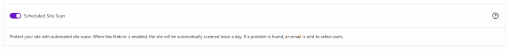 Protect your site with automated site scans. When this feature is enabled, the site will be automatically scanned twice a day. If a problem is found, an email is sent to select users.