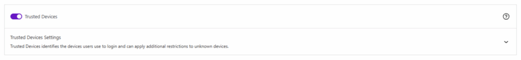 Trusted Devices identifies devices users use to login and can apply to additional restrictions to unknown devices.