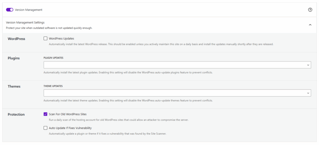 • Auto Update WordPress Core, Plugins and Themes – Configure automatic updates for all software on the site.