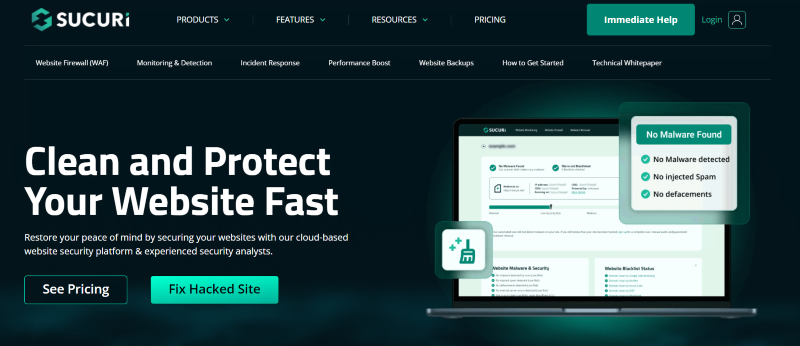 - Pros: Sucuri provides a robust firewall and malware scanning capabilities, along with excellent support for malware cleanup. Its server-side scanning ensures thorough protection against threats.