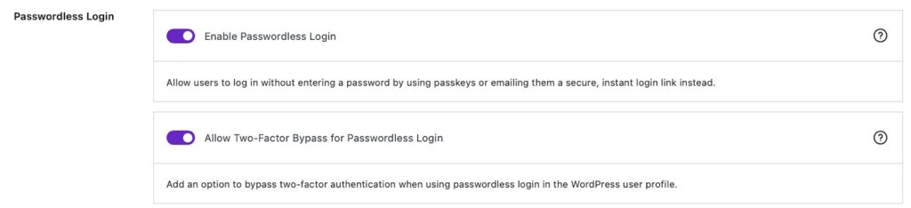 Pro tip: For a smoother login experience when using Passkeys or Magic Links, you can turn ON the “Allow Two-Factor Bypass for Passwordless Login” setting, too.