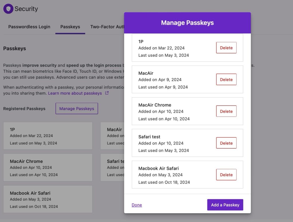Here, you will see all the passkeys you’ve registered, the date they were added, and when they were last used.