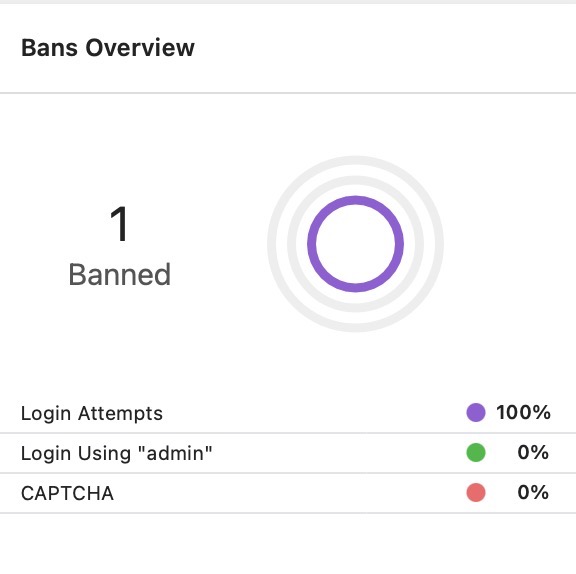 The Bans Overview provides a quick overview of Login Attempts, Login Attempts using “admin”, and CAPTCHA bans on the site over the past 30 days. You can use this card to monitor the summary of login-related events and identify suspicious activity to proactively respond to security threats.