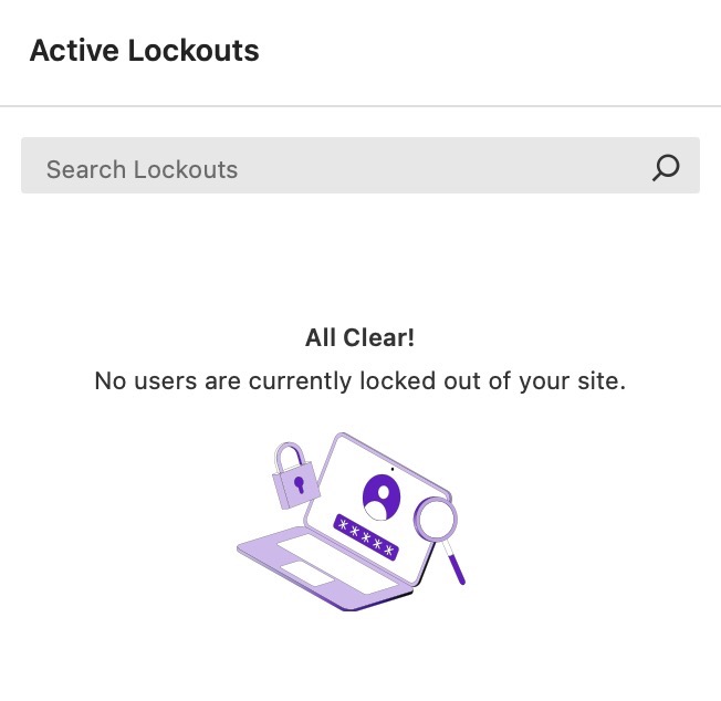 Active lockouts are temporary and last for 15 minutes before Solid Security automatically releases them. You can use this card to release any active site lockouts.