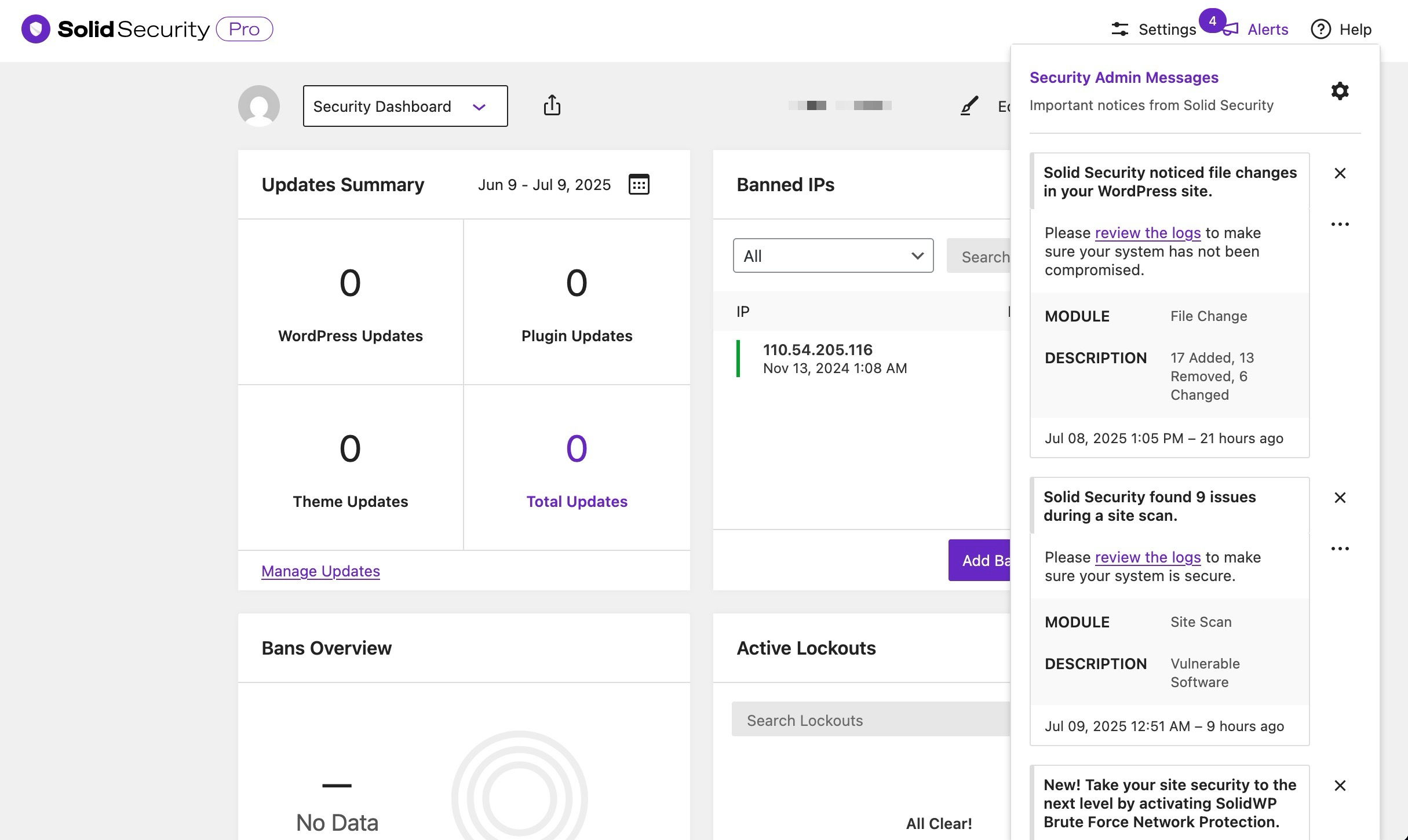 Whether you’re using the Basic version or using the advanced capabilities of the Pro version, Solid Security Dashboards ensure you can effectively manage your site’s security and build trust while keeping the right people informed.