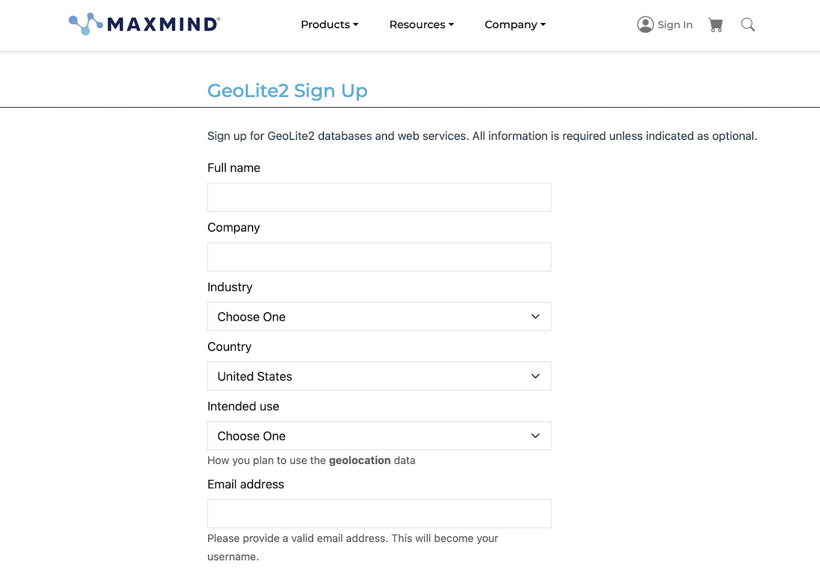 1) Sign up at MaxMind for your free account.