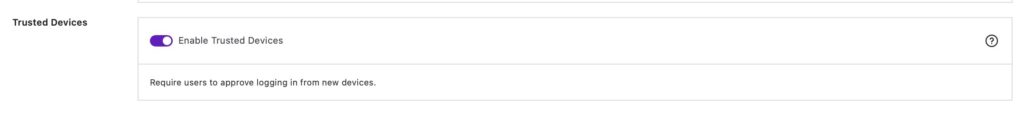 After enabling the Trusted Devices module, you’ll want to make sure that in your Solid Security User Groups settings, the “Enable Trusted Devices” toggle is ON for the user group you want it enforced: